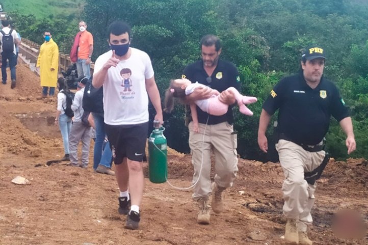 A menina, que respira com apoio de cilindro de oxigênio, tem aproximadamente três anos de idade e possui deficiência para se locomover. Ela retornava de um tratamento médico em Patos de Minas e seguia para a cidade de Guimarania. A passarela que vem sendo utilizada pelos pedestres, ainda não tinha sido colocada no local e com isso a mãe da criança teria que descer pelo buraco da obra.