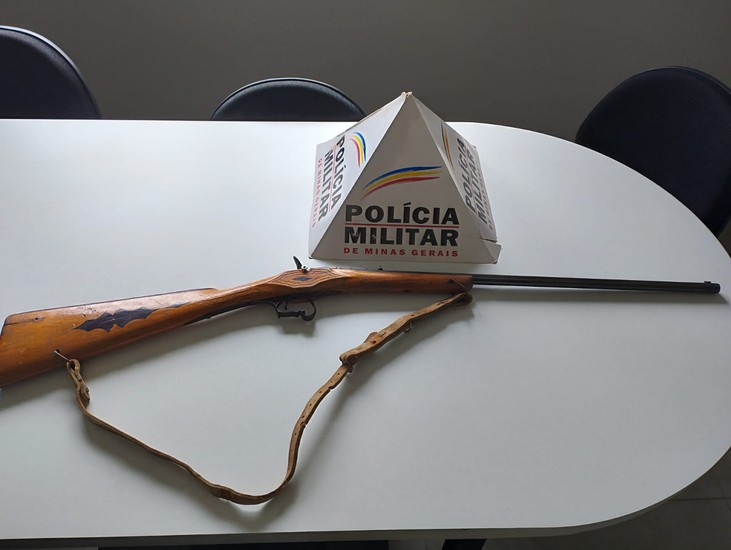 Durante a abordagem na residência, a mulher ainda disse que seu marido possui uma arma de fogo irregular escondida em uma parede atrás de um quadro. Os militares averiguaram e conseguiram encontrara a espingarda sem calibre definido com algumas munições intactas. Diante disso, o homem recebeu voz de prisão e foi encaminhado para a delegacia juntamente com a arma de fogo e as vítimas.
