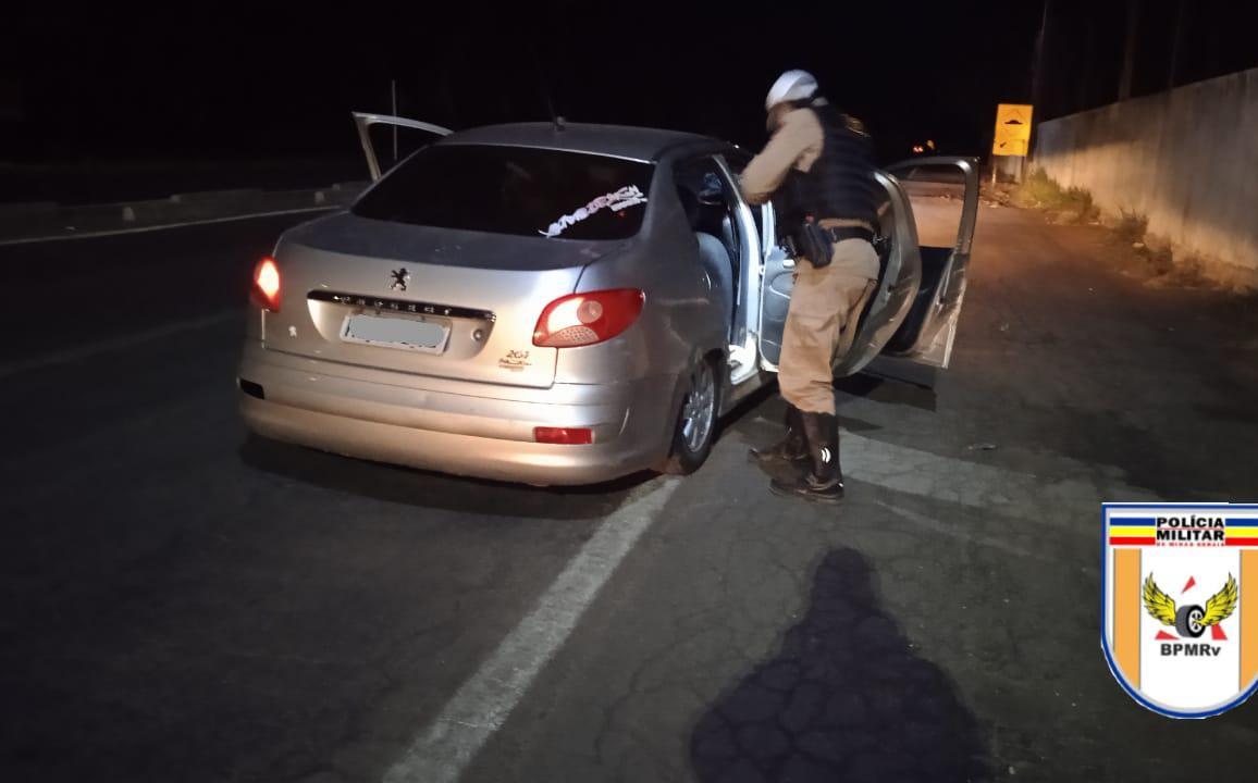 A abordagem ao veículo Peugeot/207, emplacado em João Pinheiro/MG, aconteceu por volta de 21h dessa sexta-feira (16). Diante da presença policial, o condutor C.C.D.C, 19 anos, e os passageiros L.C.B., 25 anos, e D.L.M.N., 25 anos apresentaram nervosismo, o que levantou suspeita entre os militares.