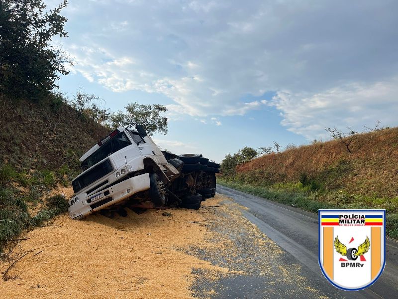 O veículo que iniciou a ultrapassagem o fechou e, para evitar a colisão, direcionou o caminhão para a margem da pista. Neste instante, o motorista perdeu o controle e bateu contra o barranco, vindo a tombar. O caminhão e a carga de milho a granel ficaram obstruindo parcialmente a pista.