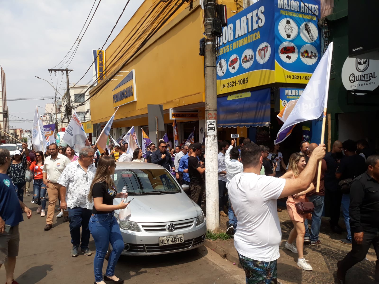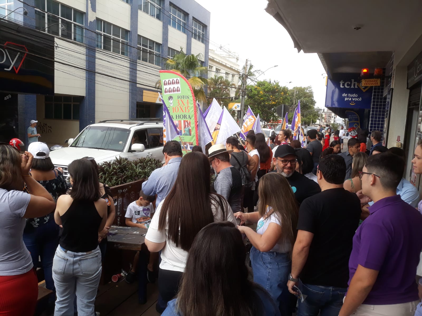 Em seguida, o governador se dirigiu ao centro da Capital Nacional do Milho, onde foi recebido por apoiadores, em frente à Câmara Municipal.