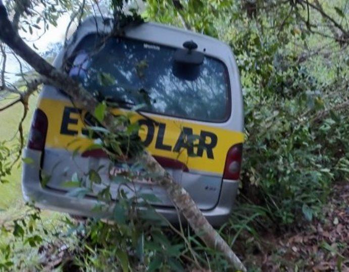 Van escolar desce ladeira e bate em árvore em Presidente Olegário